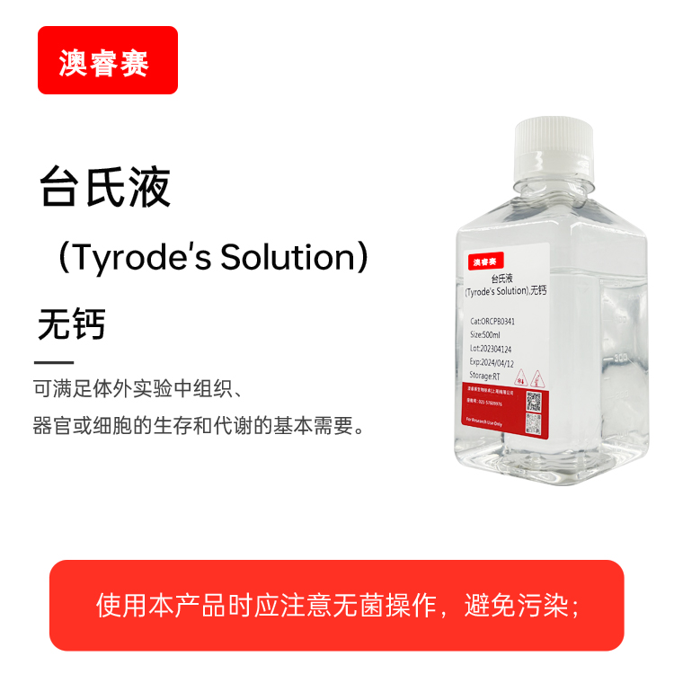 3、由于台氏液(Tyrode's Solution)中含有镁离子,易产生少量沉淀,一般温浴后沉淀即可溶解;若沉淀较多且又无法溶解时,请放弃使用;