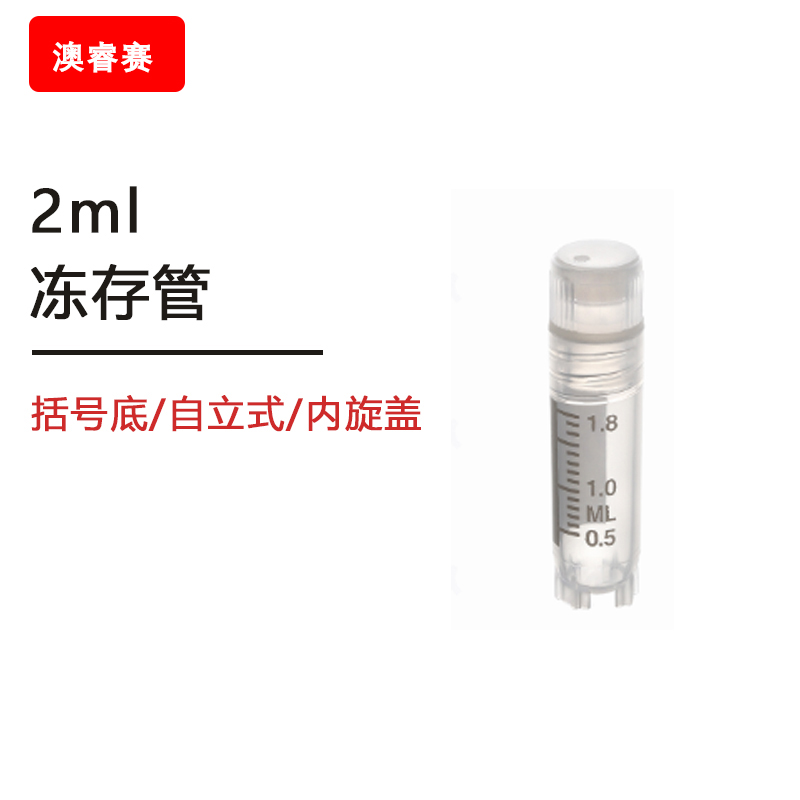 2ml冻存管,括号底,自立式,内旋盖,带刻度,可耐温度:-195℃—121℃,辐照灭菌
