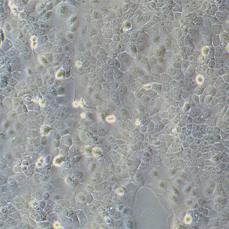 上皮细胞样,多角形,边缘不规则,单层贴壁生长,背景干净,无空泡