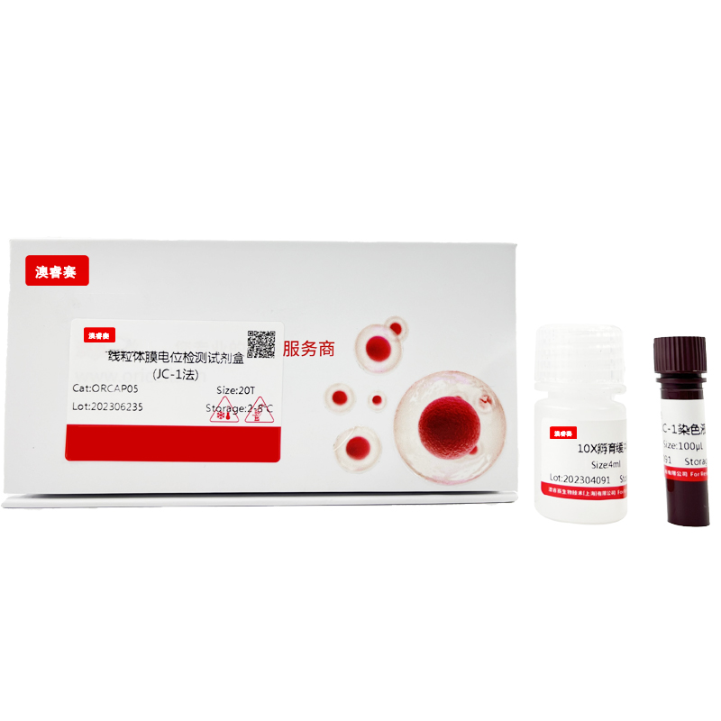 线粒体膜电位检测试剂盒(JC-1)是利用JC-1探针检测线粒体膜电位变化的试剂盒,可以快速灵敏地检测细胞、组织或纯化的线粒体膜电位变化,可以用于早期的细胞凋亡检测。