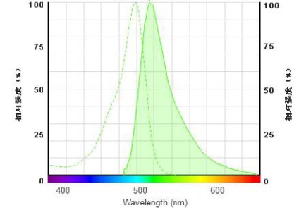 l 在实验之前运行信号测试很重要。不同的仪器有自己的强度范围。将信号测试强度调整到最大仪器强度计数的10%至15%的水平。例如,Molecular Devices FLIPR-384 的最大荧光强度计数为65,000,因此应调整仪器设置以使其信号测试强度在7,000到10,000左右。或者用流式细胞仪、荧光分光光度计检测:激发波长为488nm,发射波长为515nm左右。如果激发波长不能设置为488nm 时,可以在488-493nm范围内设置激发波长。
