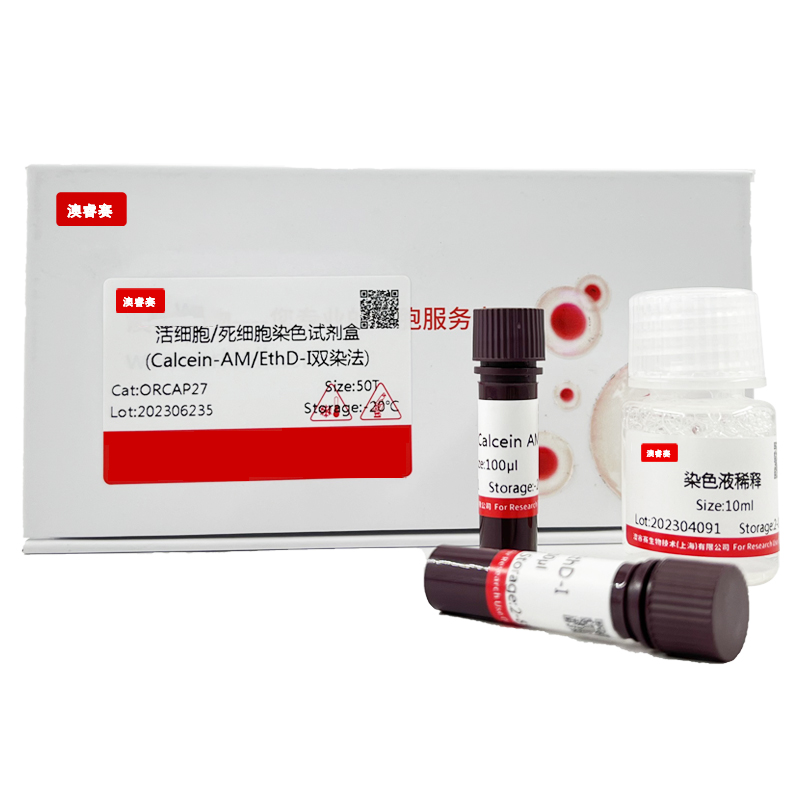 活细胞/死细胞染色试剂盒是采用Calcein-AM/EthD-I双染细胞的方法染色活细胞和死细胞。