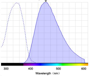 染料-DNA复合物的最大激发波长为360nm,最大发射波长为454nm.