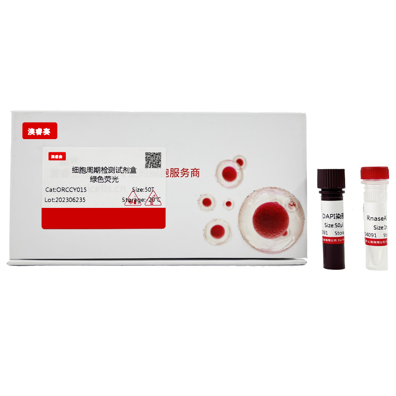常规细胞周期检测试剂盒采用PI染料,当细胞自身有红色荧光时,不能用PI进行细胞周期检测,