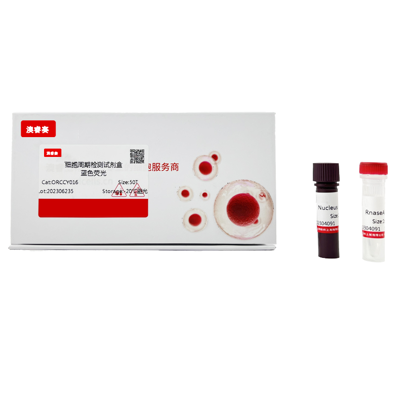 细胞周期检测试剂盒是利用细胞内DNA能够和荧光染料结合的特性,细胞各个时期其 DNA含量不同从而结合的荧光染料不同,流式细胞仪检测的荧光强度也不一样来检测细胞周期。