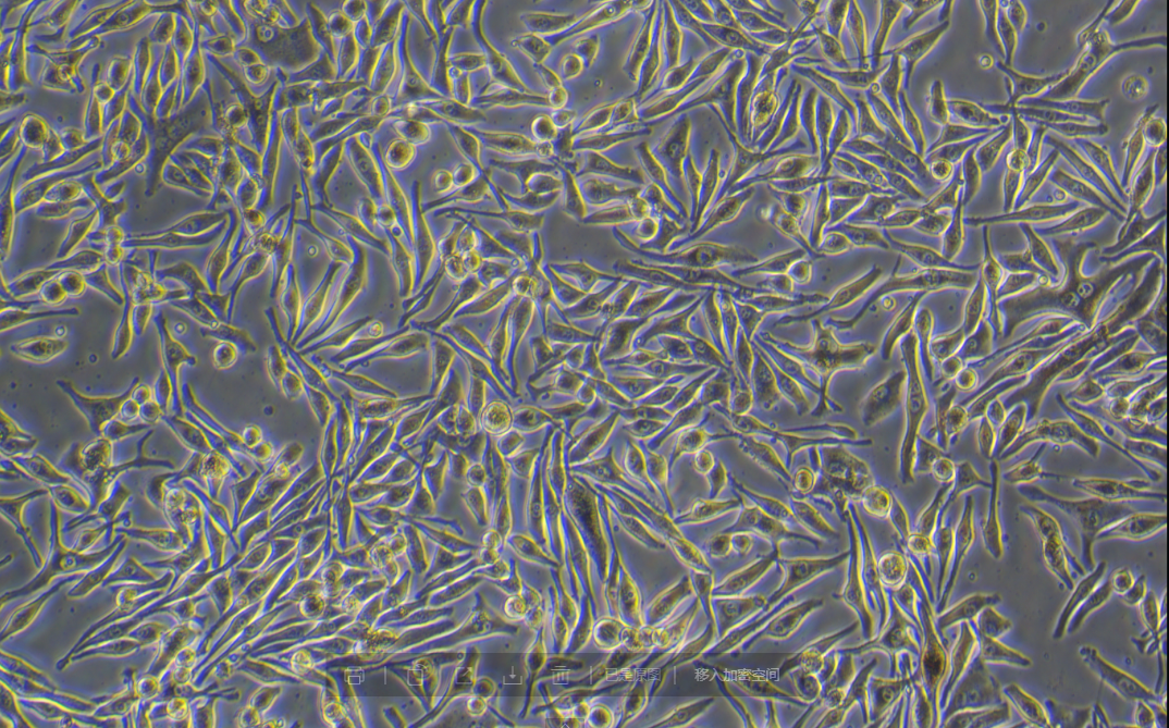 3. 用 75%酒精擦拭细胞瓶表面,显微镜下观察细胞状态。因运输问题,部分细胞由于温度 变化及剧烈碰撞死亡破碎形成碎片,是正常现象。观察好细胞状态后,75%酒精消毒瓶壁将 T25 瓶置于 37℃培养箱放置 2-4h。
